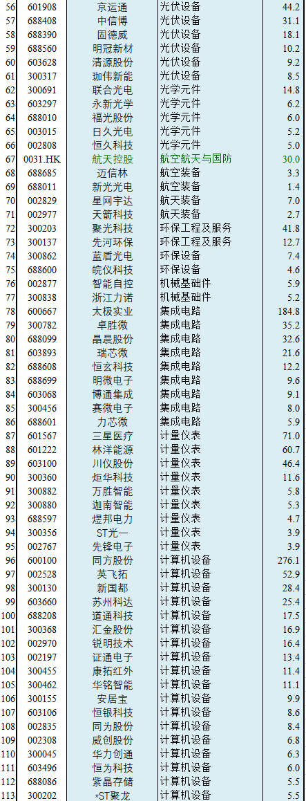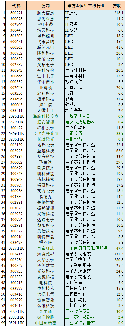 宏赫GICS细分行业乡试名单