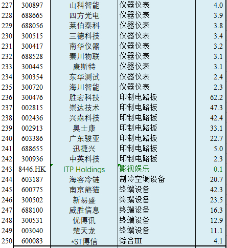 【GICS细分行业】250家“电子设备和仪器”子行业沪深港上市公司初筛选