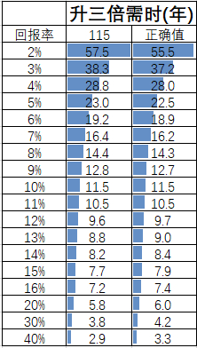 而115法则是计算1变成3的时间,也就是变成3倍的时间。