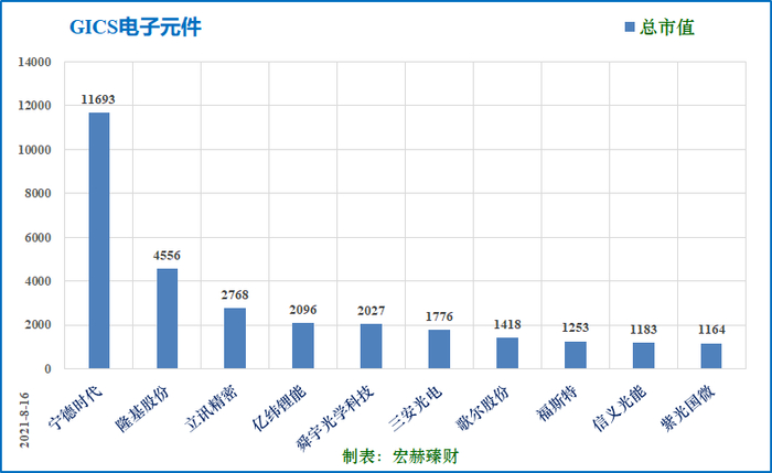 当前市值前三:宁德时代11693亿,隆基股份4556亿,立讯精密2468亿人民币。