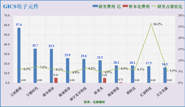 研发投入三甲:立讯精密57.4亿、宁德时代35.7亿、歌尔股份35.3亿。