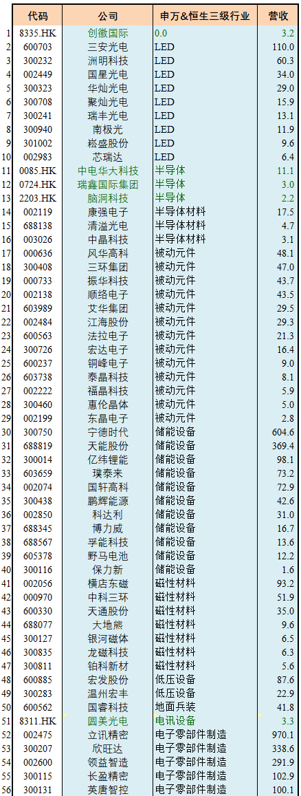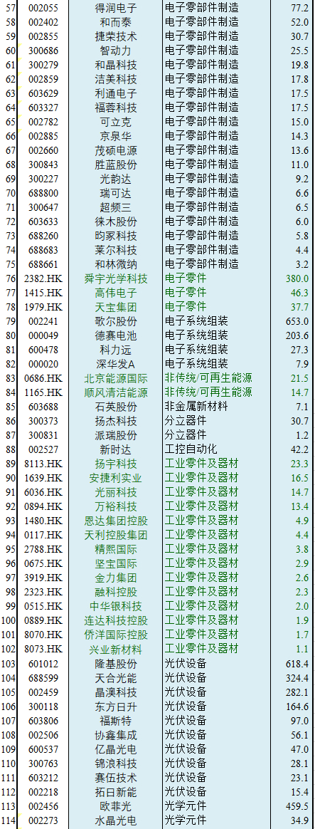【GICS细分行业】240家“电子元件”子行业沪深港上市公司初筛选