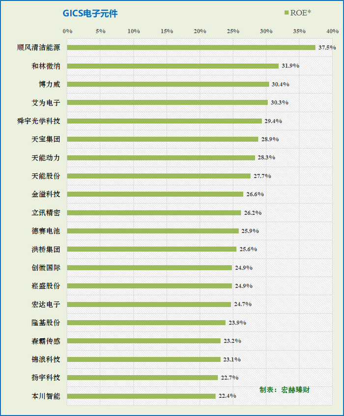 ROE中位数:8.7%。前三名:顺丰清洁能源、和林微纳、博力威