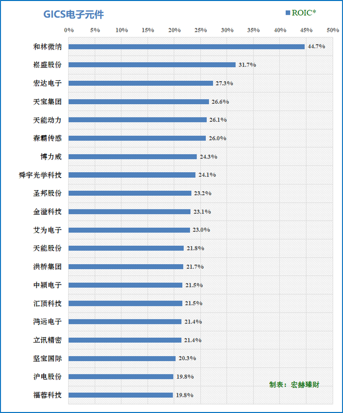 ROIC*中位数:6..4%。前三名:和林微纳、崧胜股份、宏达电子