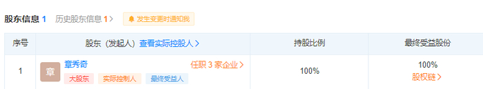 而有趣的是,截至8月中,趣时资产的唯一股东确实只有一个。就是章秀奇。