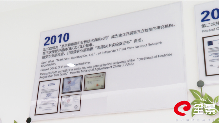 2004年,颖泰生物投资数百万美元在北京建立GLP实验室,2006年获得OECD成员国颁发的GLP实验室资格证书,成为中国大陆第一家农药GLP实验室。2010年,颖泰生物将其独立出来,成为第三方独立实验室,随后陆续获得产品化学、环境行为、生态等多个领域的实验室资质,自此基本能承担所有农药的境外境内登记实验。
