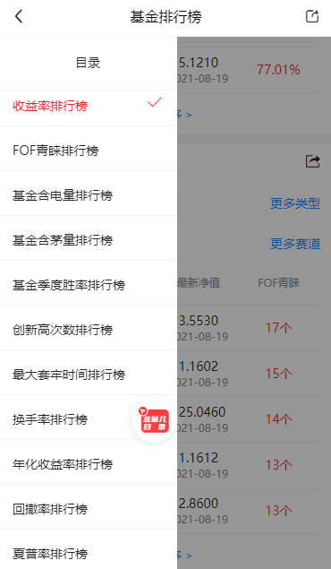 -基金排行榜增加了FOF青睐榜单。