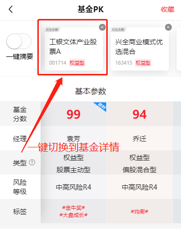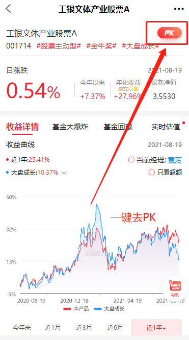 看着基金详情,突然想去pk,在当前页面一键就可以完成。