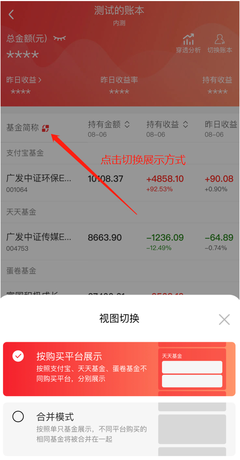 如果在不同平台购买了相同的基金,修改持仓也不会出现问题了。想要合并展示,点一下切换模式即可。