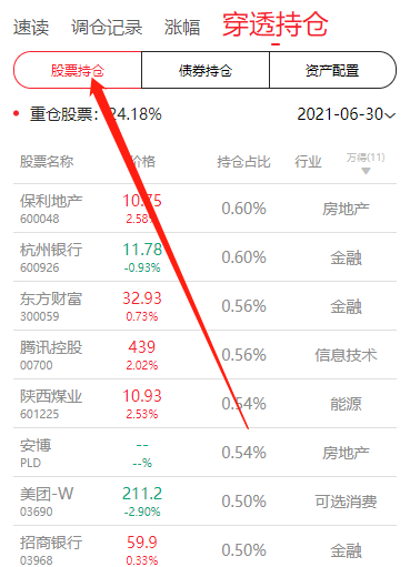 激进的赛道型投资者,也可以看出自己买的基金持仓行业分布,有没有偏离自己的目标了。