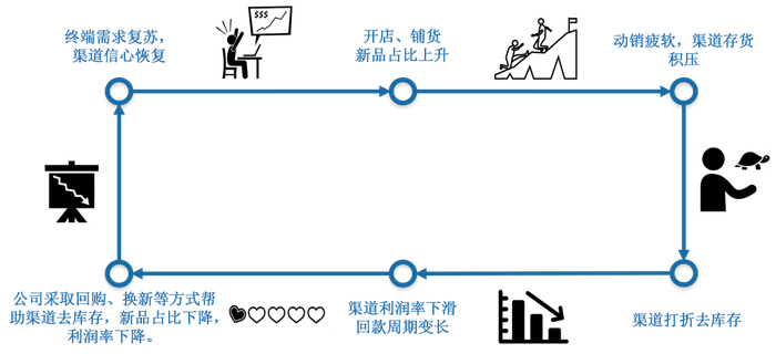 第一,存货减值带来的经营波动难以避免。服装的终端需求天然会随着时尚潮流变化,而服装企业难以提前准确预判需求。因此服装企业往往会因为产品当季售罄率较低,而形成渠道库存。一旦服装企业渠道库存较高,就需要打折清理过季货品。而打折清理库存,不仅会对企业的当期利润造成负面影响,也会损害品牌价值。这导致服装企业的经营呈现比较强的周期性,盈利能力往往进两步退一步。