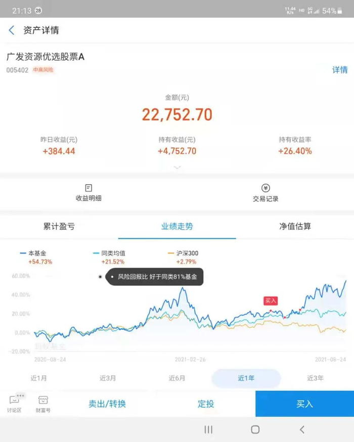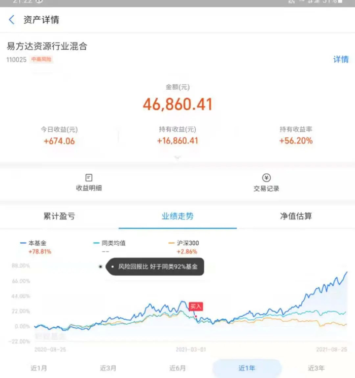 截止至今,没想到今年买入涨的最好的是易方达的资源基金。