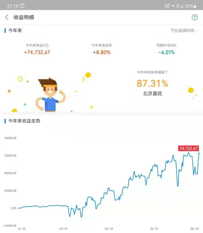 晚上看了收益,发现还是直接展示收益是最简单直接的(净值尚未更新完全)。