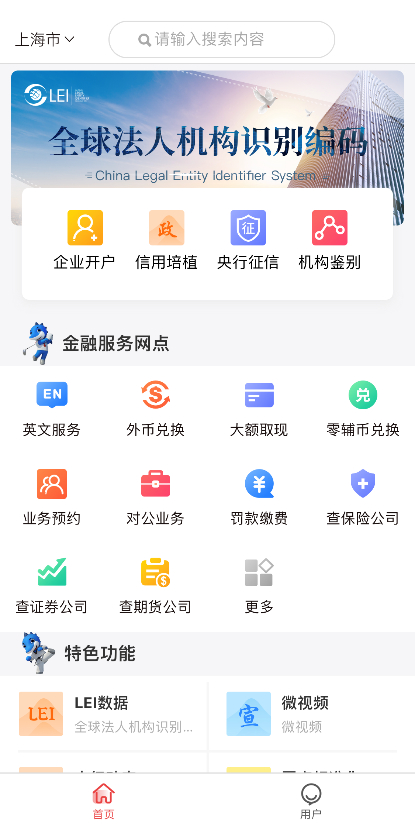启动“金融网点通”APP就会进入到应用主页面,功能丰富、实用便捷。