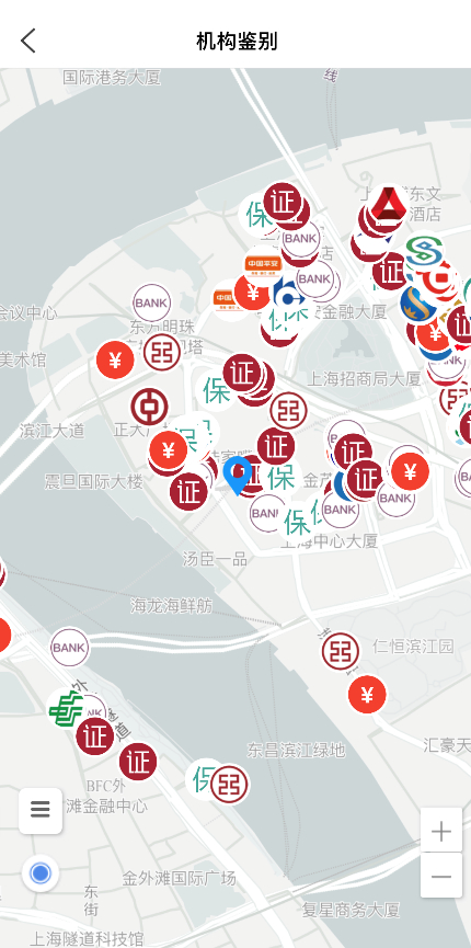 进入机构鉴别,即可快速搜索附近的银行、证券、保险、期货或其他正规金融机构网点,再也不用担心被假冒机构诈骗啦!