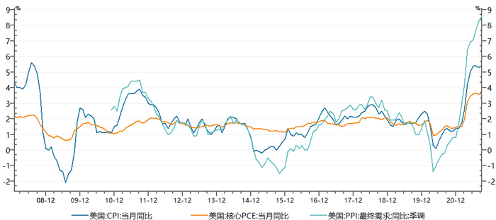 当前,美国的物价和薪资涨幅正处于数十年来的高位。10月公布的美国5年期盈亏平衡通胀率攀升逾9个基点至3.007%,为有纪录以来首次突破3%,远超美联储2%的长期通胀目标。另外,据美国劳动统计局10月13日公布数据,美国9月CPI年率升至5.4%,超出市场预期,已经触及到了2008年以来高点。