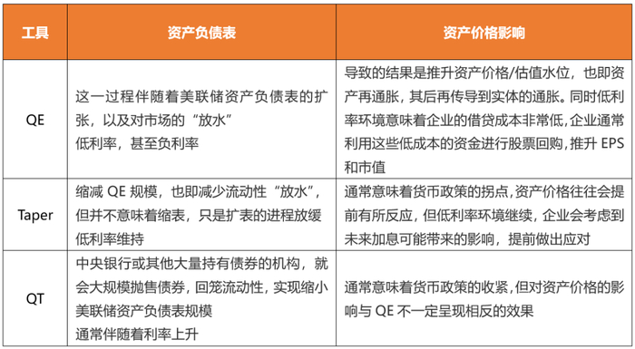 表1.联储QE,Taper,QT对资产负债表和资产价格影响