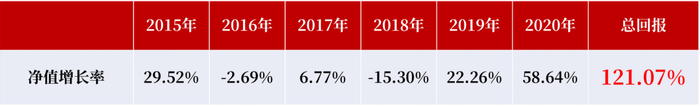 东方小红做一个统计,投资者每年1月1日选择去年的冠军基金(偏股混合型基金分类)投资,从2015年—2020年累计回报率为48.41%,而同期偏股混合型基金指数上涨145.52%。