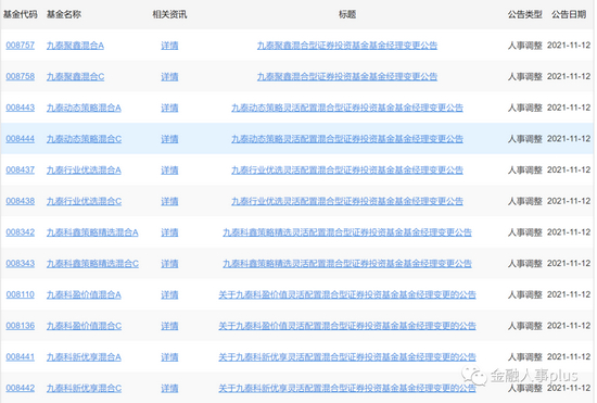 值得注意的是,就在前一天,11月12日,九泰基金发布公告,公司分管投研的副总经理吴祖尧已经被解聘基金经理,同时卸任其管理的全部6只基金,离任日期是11月10日。传言其后续还会进一步卸任副总经理的高管职务。