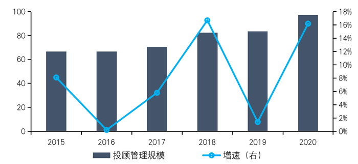 (4)1970年代的成熟期:美国于1978年推出“401K”计划,其初衷是为了鼓励美国国民增加养老储蓄,养老金资产规模的快速增长为共同基金市场带来了大量新增配置资金,也催生了大量的投资顾问需求,投顾业务进入发展的成熟期。