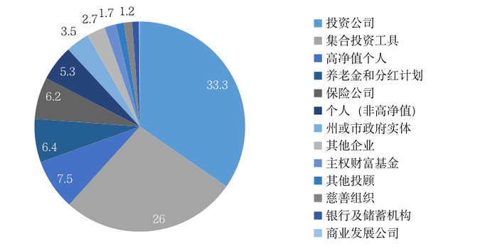 不过从规模贡献上来看,基金客户和机构客户的占比较高。SEC下注册的投顾管理的97.2万亿美元中,其中个人客户(含高净值、非高净值)资产管理规模共12.8万亿美元,占比约13%。非个人客户中投资公司、集合投资工具、养老金和分红计划、保险公司、州或市政府实体为其前五大类,资产管理规模分别为33.3万亿、26万亿、6.4万亿、6.2万亿、3.5万亿美元,占比分别为34.3%、26.7%、6.5%、6.3%和3.6%。