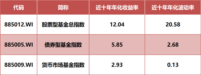 股票型、债券型、货币型基金指数的收益率VS波动率
