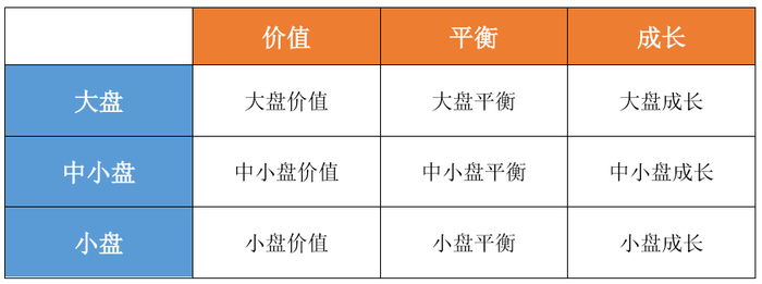 用这种方式,我们可以将简单的二维风格划分,扩展为九种不同风格来更准确的描述股票型基金的风险收益特征。