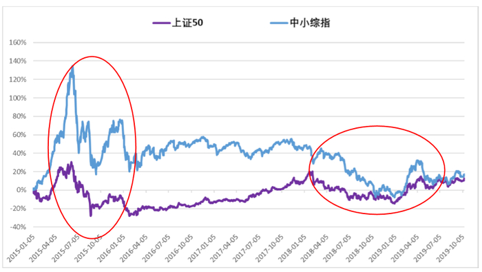 此外,上证50属于“大盘风格”的典型代表,中小板指属于“中小盘风格”的典型代表。不同风格指数表现出的风险收益特征也具有一定区别。在不同的时间阶段也有着相对区分的走势表现。