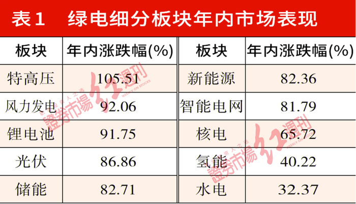 相较祁海坤的相对谨慎,国联证券电力设备与新能源行业首席分析师贺朝晖的看法则很乐观。他认为,绿电概念尤其是绿电基建领域的背后有着非常强的项目落地预期支撑,而非单纯的概念炒作。政策给出了目标,现在具体项目已经逐步执行,相关设备商开始供货拿订单,概念背后有非常明确的产业逻辑支撑,因此未来确定性很强。“目前,绿电基建尚处于低基数上刚刚开始成长的阶段,即使年内细分板块实现了较大的涨幅,也还远远没有到达天花板,中长期甚至长期来看,成长空间依然很大。”