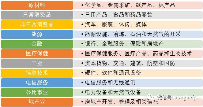 新的标普全球行业分类标准把标普1500指数的成分股分为11个行业部门、24个行业组、68个行业和157个子行业。11个行业部门如下: