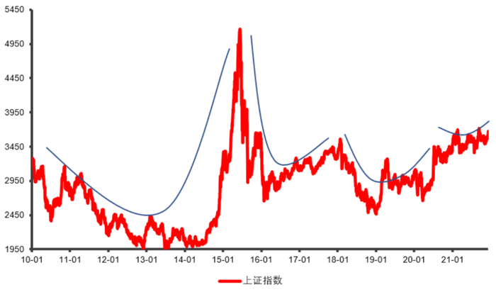 我们以上证综指数为例,2010年以来,A股共经历了4轮明显的震荡市(见下图)。假设我们在这4段区间进行定投,会取得什么样的成绩呢?