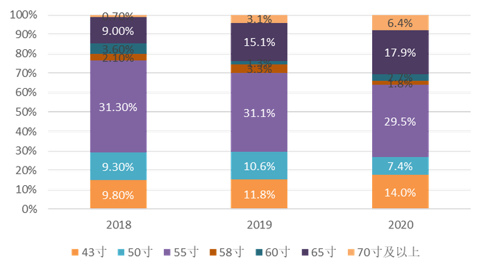 狭义电视消费范畴内,大尺寸占比提升(65寸以上),绝对小尺寸(43寸以下)占比也在提升,对于大尺寸而言,智能微投产品具有绝对的性价比优势,而绝对小尺寸预计更多对应非客厅场景(如卧室、书房、租房),有便携性需求,也有投影的渗透空间。