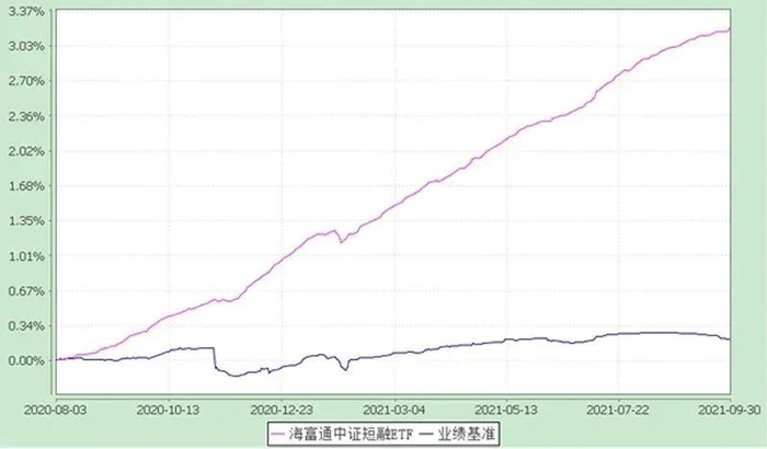 注:海富通中证短融ETF是债券型基金,与货币基金是两个不同的品种,预期风险高于货币基金,基金成立以来和近一年的净值增长率分别为3.22%、2.90%,同期业绩比较基准收益率分别为0.21%、0.19%。数据来源:基金定期报告,截至2021年9月30日,自合同生效日(2020年8月3日)起计算。期间历任基金经理:陆丛凡(2020/8至今)。