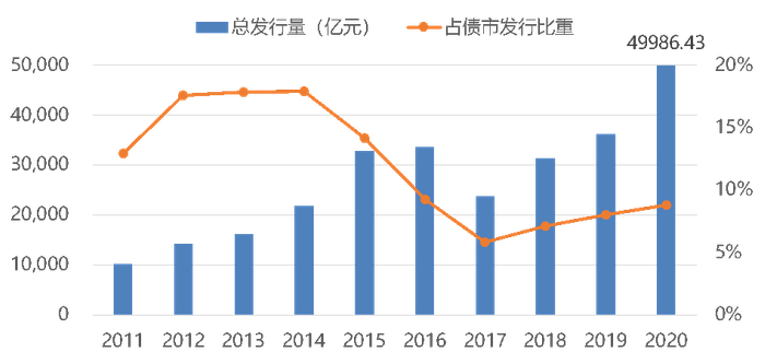 据Wind数据显示,2006年短融发行规模为2919.5亿元,2020年上升至49986.43亿元,增长超16倍,发行规模创历史新高。2020年发行数量增加至4842只。自2012年6月起,公开市场评级在AA级(含)以上的发行人,允许短期融资券(包含超短融)的发行额度不受债券余额不超过净资产40%的限制,此后短融发行期数和规模大幅增加。