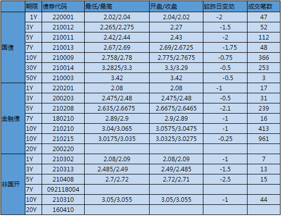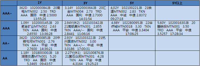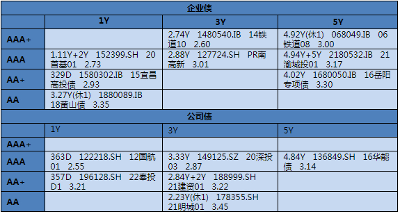 今日公司债企业债交投活跃,买盘较为积极,收益小幅下行,成交在估值-3bp以内,市场主要关注1-3年AAA和AA+品种。