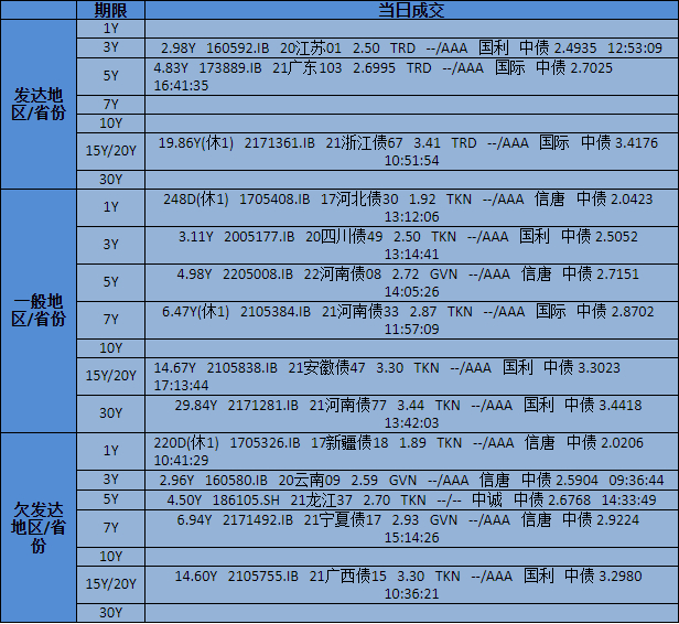 地方债今日交投一般,收益率变动不大,成交以中短久期中等资质地区为主。
