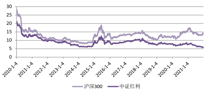 下图为红利指数的历史市盈率,由图中证红利指数的市盈率长期低于沪深300指数,截至2022年2月8日,中证红利指数的市盈率TTM为6.04,处于上市以来1.71%的分位点,处于估值的低点。低估值能够提供较高的安全边际,避免估值泡沫破灭带来的大幅回撤,提升投资体验。