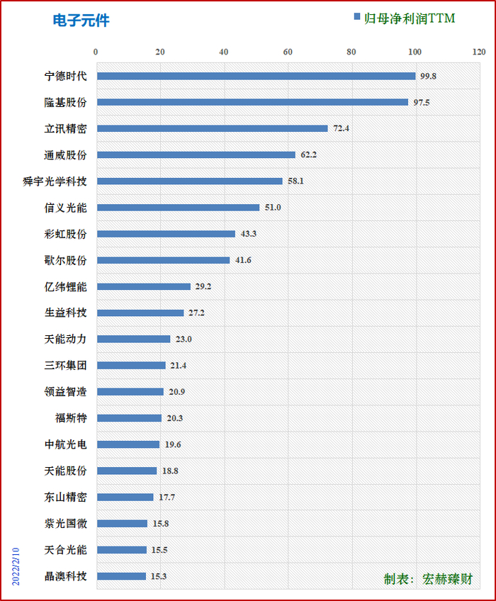 净利润Top3:宁德时代99.8亿、隆基股份97.5亿、立讯精密72.4亿人民币。