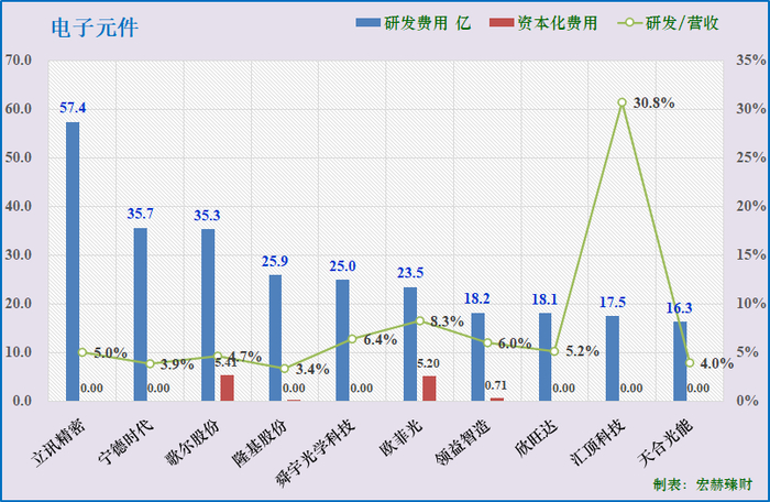 研发投入三甲:立讯精密57.4亿、宁德时代35.7亿、歌尔股份35.3亿。