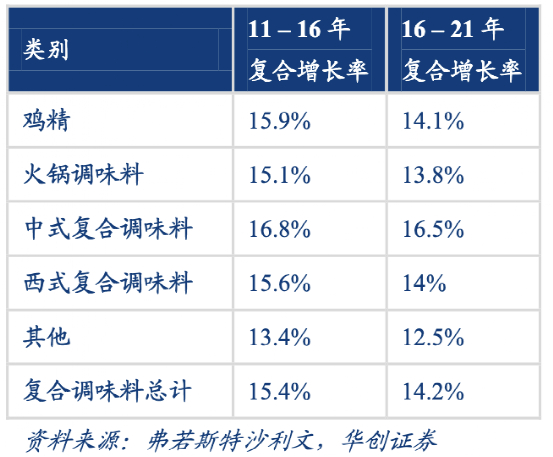 根据艾媒咨询统计数据,2012年我国复合调味品行业市场规模约495亿元,2018年增长至1113亿元,年均复合增长率为14.46%,明显高于同期调味品行业市场规模增速。在不同的品类中,复合调味品渗透率和市场集中率也有所不同,比如C端火锅底料的龙头颐海国际,2020年市场占比为7.1%,市场前五名共占比仅为17%,格局较为分散。
