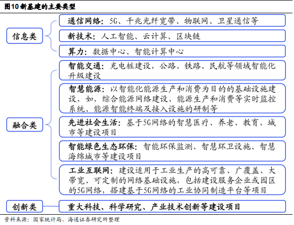 根据海通证券宏观团队报告《基建投什么?——“基建”稳增长系列一》所述,做强做优做大数字经济,离不开新基建的支撑。1月12日国务院印发《“十四五”数字经济发展规划》,提出到2025年,数字经济迈向全面扩展期,数字经济核心产业增加值占GDP比重达到10%。数字经济的高质量发展对于新基建的投入要求也相应提高。