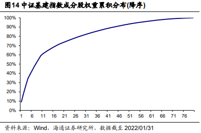 从各行业的主要成分股来看,中证基建指数覆盖了中国基建行业的主题龙头,能够较为全面反映基建行业的发展轨迹,持股的平均自由流通市值较大,央企属性较高。