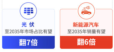 数据来源:光伏数据来源于国家能源局、兴业证券;新能源车数据来源于中汽协会、EVvloumes(瑞典咨询机构);市场占比:指光伏在国内能源市场的占比;新能源车销量:指2035年预计销量与2021年的销量。