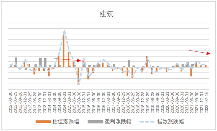 而在2021年3季度估值小幅上行,盈利反而下行。估值修复动能不足,盈利未有明显改善,因此建筑行业指数未看到明显上涨。