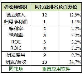 同花顺各项指标都居行业头筹,但垂直应用软件领域更公司经营不尽相同,仅供参考。