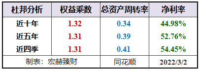 该公司杜邦结构:【优】(主观评测描述范围:优-良-中-差)