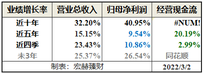 营业收入、归母净利润和经营性现流净额分段复利增长率