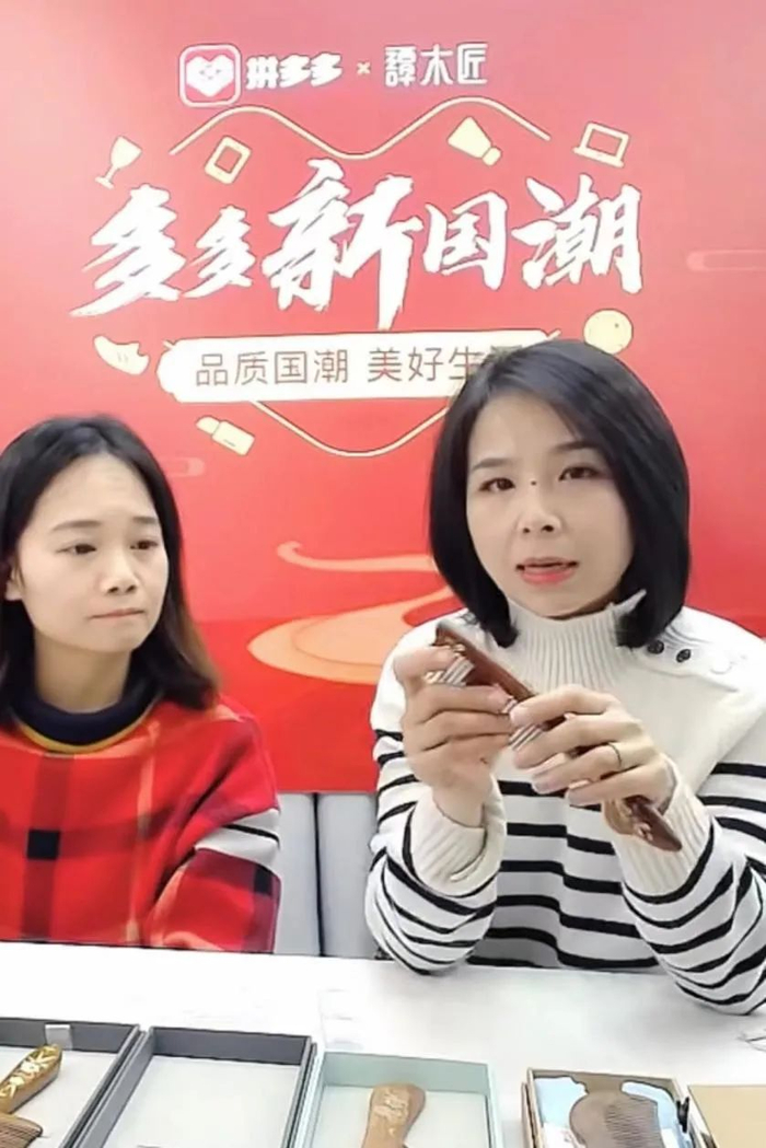 2月28日,谭木匠副总裁刘珂佳(右)走进拼多多直播间,为网友分享老字号的国潮理念。