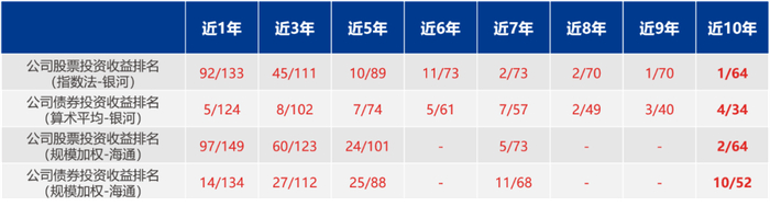 兴证全球基金始终立足于中长期的投资视角,打造优质投研能力,为客户提供一流的投资管理服务。截至2021年12月底,公司10年维度股票投资管理能力位居行业第1(1/64,银河证券指数法),收益率达513.55%;10年维度债券投资管理能力位居行业第4(4/34,银河证券算术平均法),收益率达113.15%。2020年,兴证全球基金第11次摘得金牛基金管理公司大奖,累计获奖数居行业第1。