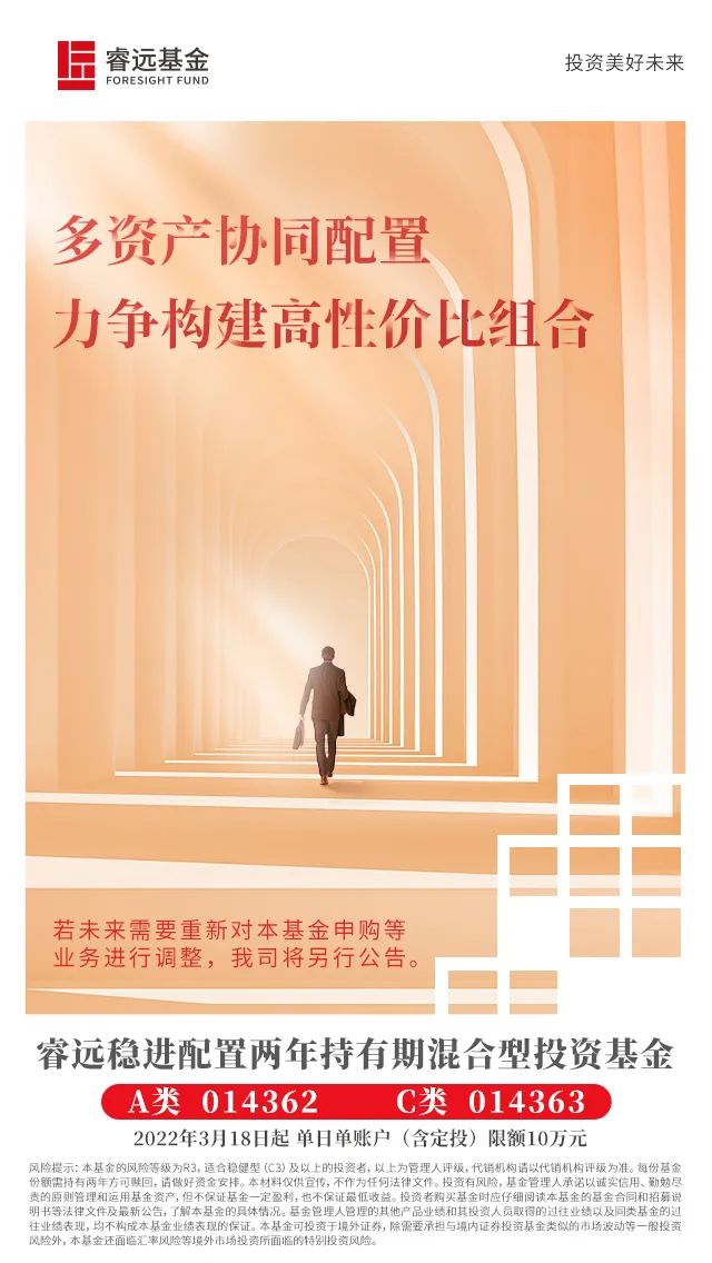 根据管理人3月17日公告,为维护持有人利益,自3月18日起睿远稳进配置两年持有混合基金(A类份额:014362;C类份额:014363)单日单个基金账户累计申购(含定投)金额不超过10万元,超额部分按“金额优先、时间优先”原则进行确认。